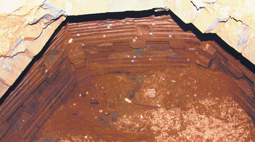 墓室是由青砖垒砌起来的 山东省即墨市鳌蓝路自上世纪50年代末就修成使用,迄今已50余年,谁也没有料到路下竟会藏着一座古墓。日前,修路工人在鳌蓝路施工时轧塌墓室,这才使得这座古墓重见天日。6月22日上午,考古专家初步认定,这是一座宋元时期的古墓,对研究当时的殡葬风俗和建筑风格、工艺有着重要意义。 挖掘机施工轧塌古墓 在即墨鳌蓝路和烟青一级路路口西侧50米远的现场,一名修路工人表示,他开着挖掘机在这里施工时,一个车轮突然下陷,他探出驾驶室观察,发现车轮下的地面破了一个大洞。他小心翼翼地把挖掘机移开,随后回到现场勘查,发现地面上出现一个长约1.2米、宽约1米的大洞。 即墨市公路局一名负责人说,直到6月21日下午6时许,他才得知此事,来到现场查看发现这个大洞竟是一座古墓。该负责人介绍说,鳌蓝路自上世纪50年代末就修成了,上世纪80年代还曾大修过一次。前不久鳌蓝路再次施工,路面已被下挖了半米多深,这个古墓一直没有被发现,没想到现在竟重见天日。 古墓全由青砖垒成 这座古墓由于下面积满了泥土,露出的部分仅有1人多深,底部面积约有7平方米。墓室呈六棱形,每两面墙之间都用砖垒了一根柱子。每面墙上都留着很多凹槽,这些凹槽的深浅、大小和位置都一模一样。在墓室东面的墙上,还有一块凸出的砖块,好像是墓室里的“机关”。这个墓室的南面,还有一个砖垒的墓道,墓道顶部呈半圆形。 不管是墓室的墙壁、柱子,还是墓室的顶部,都是用长约36厘米、宽约18厘米、厚约4厘米的青砖垒成。据随后赶到现场的即墨市博物馆专家介绍,这个墓顶采用的是技术含量很高的“发碹”技术,墓室和顶部都建造得十分精美,现在已很难找到技艺这么高的工匠了。 附近曾出土三座古墓 家住古墓西侧东障村的蓝先生称,1988年古墓东侧修建立交桥时,曾在这座古墓的东侧挖出一座古墓。当时挖出的古墓墓室是圆形,也是用这样的青砖垒成,当时有人从墓室里挖出一个罐子和一个青花瓷盘子。 据该村另外一名蓝先生介绍,1989年春天,这座古墓的北侧30米远处下排水管时,也挖出了一座古墓。那座古墓和现在发现的古墓很相似,大小、建筑结构等基本一样,整个墓室有3米多深,但是墓室里只有几块已朽烂的棺材板。该村一名村干部介绍说,前不久在附近也曾发现一座墓室,但没有引起人们重视,现在那座墓室已经找不到了。 建于宋元时期 6月22日上午,青岛市文物局专家前来对这座古墓进行了鉴定,根据古墓的建造风格和特征,专家初步认定,这是一座宋元时期的古墓,但墓主身份尚不能考证。 家们介绍说,这座古墓保护完好,四周没有发现盗洞,这说明它没有遭到盗挖。这座古墓的建造工艺之完美、建筑质量之上乘,表明宋元时期即墨地区的建筑业十分发达。这座古墓的出土,对研究当时的殡葬风俗文化,及建筑工艺和风格等,有着重要意义。因此,无论这座古墓里是否有宝贝,文物部门都应该进行保护性挖掘研究。 |