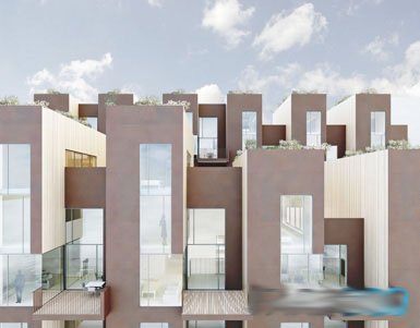 高端住宅楼(图片来源:自由建筑) 瑞典斯德哥尔摩的Hammarby Sjöstad建立在原工业港口地块上,现在改造成一个可持续的城市项目,于世瞩目。现在,斯德哥尔摩正计划在另一个港口地带建造高端住宅楼项目,并由C. F. Møller事务所设计。