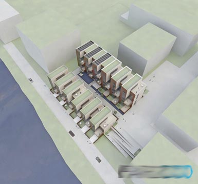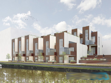 高端住宅楼(图片来源:自由建筑) 这里的住宅分为5种不同的类型,并以错列的模式建造,可以利用丰富的光照和水边无敌的景致。这一设计留出了私人户外空间和平台。