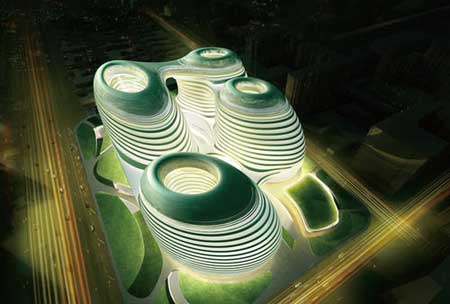 扎哈•哈迪德的上海临空地块设计方案 这已经是扎哈•哈迪德第三次成功竞得SOHO中国的设计项目,此前的银河SOHO、物流港项目,都曾在业界引起轰动,银河SOHO更是被誉为北京城新地标。此外,由扎哈设计的广州歌剧院同样被广州市作为新建七大标志性建筑之一。