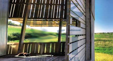 (图片来源:自由建筑报道) 西入口的门廊墙面倾斜成一个角度,在视觉上唤起我们对于倾斜的谷仓的印象。宽大的门廊采用木板条搭建,这些木板条可以过滤掉过于强烈的午后阳光。谷仓壁板上特意设置了大大的开口,用钢材和绳索控制它的开口大小,以调节进入室内的光线。而南面的玻璃窗允许太阳发出的光和热进入室内,并且被混凝土地板吸收,这种地板装有地源热泵以及散热管,由太阳能系统加热,因此可以在寒冷的季节为室内保温。 那些厚度为4/4的粗锯白橡木创造了整栋农舍雨幕似的外表,也因为这种栅栏式的构造,到了晚上,这所房子会幻变成一座美丽的灯笼。这一点也让AIA的评审们惊艳。 进到室内,我们可以看到,它延续了外部的谷仓风格。室内的门和采光都用绳索和滑轮来控制。应屋主的要求,建筑设计师将其打造成一个有三间卧室,两间半浴室和足够储藏室的整套房间。钢制框架,天花板由木条铺设,地板、墙面和楼梯则采用了菱形钢材、竹子和混凝土。 对于居家生活来说,最为理想的是它的谷仓式的空间设计。在地面楼层以上,还搭建有一个“干草棚”,这实际上是一个可供休憩的阁楼,它的特色是相当通风,在有太阳的下午或有星星的晚上,都是再理想不过的小睡空间。地面楼层以下则建了一个“地下谷仓”,这里作为卧室相对更加舒适和宽敞,够接地气,还很私密。 整个设计的意图是要建造一栋现代建筑,但同时要使它仍然适用于一个生活了好几个世代的乡村家庭。它的设计肯定了农业技艺,也遵从农场主对季节的高度关心和敏感,那些打破内外界限的木条就是明证。