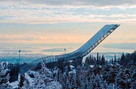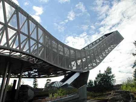 (图片来源:ABBS ) 这个悬臂式钢结构滑雪台的成本为7,500万英镑,取代了现有的滑雪台。这个滑雪台的高度为58米,有一个观景台,可以观赏奥斯陆和周围乡村的风景。