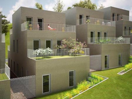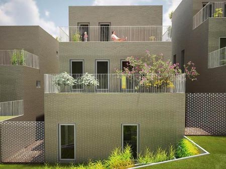 每个独栋单元都由一个狭窄的露台或绿化通道划分。阶梯式的户外平台为居住者提供了充足的活动空间,并且可以种植自己的花园。