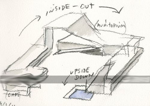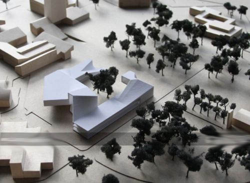 (图片来源:景观中国) 洛特最初的总平面设计是以绿地为核心,采用的是古典的轴对称形式和有层次的同心圆形式,然而,史蒂芬•霍尔事务所则澄清说:“我们设想新的博士楼设计方案使最初的总体规划活力重现,并且重塑了校园的绿地空间。那些20世纪70年代的建筑阻隔了原始规划中内部绿地之间的相互联系,导致了很多封闭空间的出现,在这种情况下,我们的设计方案则致力于将这些封闭的空间打开,对绿地空间进行重新的定义。”