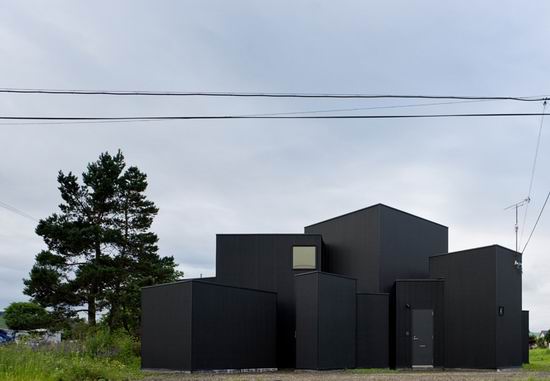 (图片来源:designboom) 外部效果 每个方盒子的高度由各自功能决定,这种错落的高度变化创造了适宜的空间感和亲密感。作为中心的起居室高度最高,其它方盒子则比起居室稍矮,错落的布置在周围。由于方盒子的位置是根据日照、通风等自然条件而定,所以整体形态看上去自然而无序,充满动感。