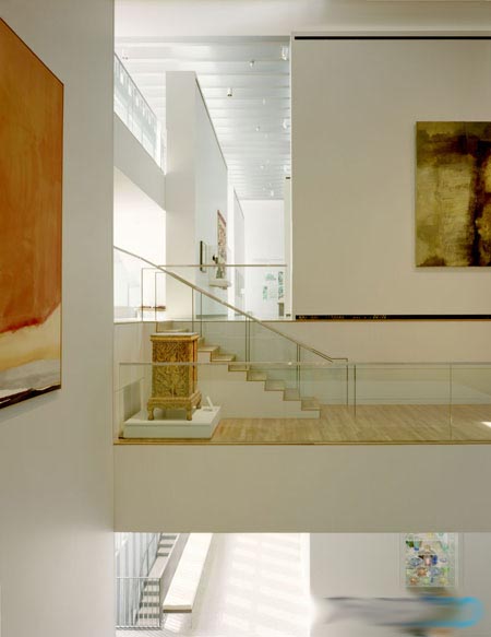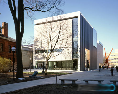 (图片来源:自由建筑报道) 三座40英尺高的混凝土和石灰石悬臂墙构成了新的附楼,并在南边设置一个新的入口大厅,东边是一个隐蔽的雕塑花园。钢和玻璃建造的立面将阳光引入到内部的展馆和流通空间,并让人们观赏到外面风景如画的校园。