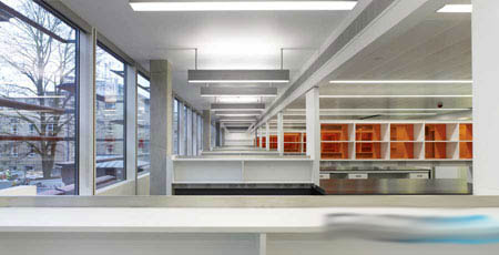 (图片来源:自由建筑报道) Make事务所与Nightingale Associates曾经合作设计过牛津大学“旧路校区”(Old Road Campus)改造工程,2007年完工后成为现代实验室设计的样板,将癌症研究的几个不同学科结合到一起,实现了更大程度的协作和互动。