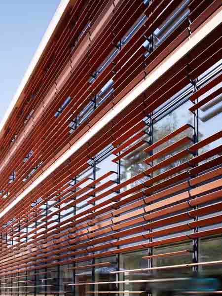 (图片来源:自由建筑报道) 协同工作是设计的主题,现有的建筑显然不能满足用途,因此流通路径进行了简化,鼓励研究中心和其他各楼之间的研究者进行交流。Make事务所的项目经理Justin Nicholls表示,该建筑立面的材料和尺度都很像是DNA的图案,还对应了邓恩学校的砖石色调,为南立面提供了遮挡。内部实验室是开放式的格局,既有实验设备,也设置了可供书写的桌椅,同样也是也是为了促进交流。利用CCHP技术,数据中心产生的热量将用来制冷,减少了20%的能耗,达到英国BREEAM的“卓越级”(Excellent)评分。