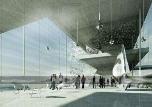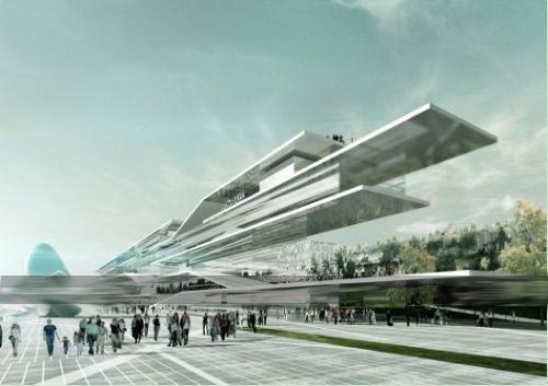 (图片来源:景观中国) 贝尔格莱德的新地标 该建筑物别具一格的造型将为贝尔格莱德市竖立一个新地标。建筑材料主要为混凝土与玻璃,这两种材料一种光滑厚实,一种透明晶莹,彼此形成了强烈的材质对比。建筑物内部空间通透反光,模糊了建筑内外的界限。 该建筑物的设计形式和开发式布局让它极具灵活性,无论是在时间层面还是空间层面。可移动的滑动式外墙与隔墙让建筑可以满足举办各种活动的需要。该建筑可以被视为一个活动式架子,具备举行文化活动与商业活动的综合功能。
