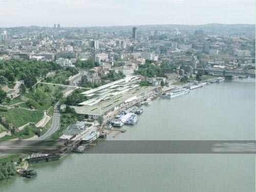 (图片来源:景观中国) 该建筑是平面场地与垂直场地之间的过渡,同时也反映了贝尔格莱德市复杂的地域特性与丰富的文化生活。整个建筑物造型呈线性,为展览、音乐会以及其他露天活动提供了大量空间。建筑立面则为在其两侧发生的露天活动提供视听背景。 整个建筑被设计成为一片立体的公共空间,大型露天斜坡从建筑底部直通建筑顶部、观景平台以及不具备商业功能的直通山坡城堡的桥梁。两条室外长廊穿越建筑物,同时城市景观也逐渐被展示出来。露天长廊最高处位于平台顶点,在这里具备绝佳的视野去观赏河流与城市天际线。