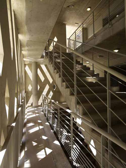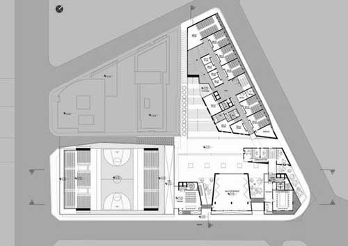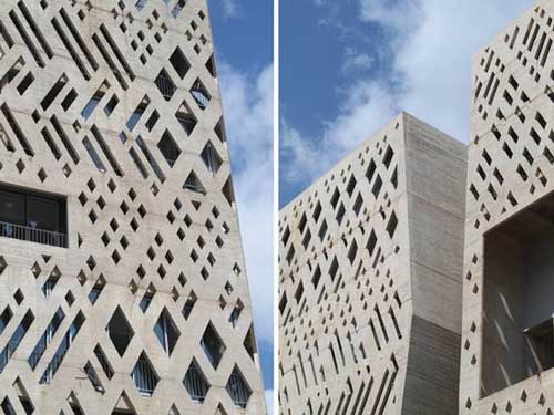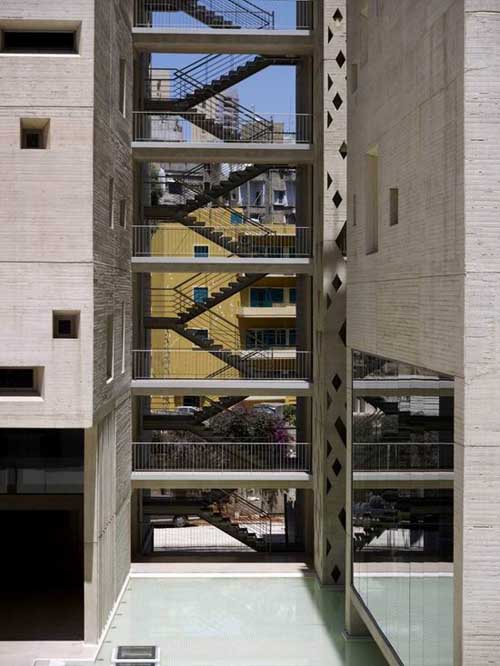 'USJ campus de l'innovation et du sport' 109 architectes,黎巴嫩,贝鲁特 由黎巴嫩建筑事务所109 architectes设计的项目'USJ campus de l'innovation et du sport' 现已接近完工。 这座校园建筑位于黎巴嫩首都贝鲁特。建筑师试图将它融入城市文脉,新校园希望将被统一到周边充满历史和文化氛围的城市环境中去。这座建筑从一个城市街区中被雕刻出来,中心的空自然的创造了一个集会空间,同时建筑师还在这里还设置了一个巨大的楼梯,从垂直方向上引导学生们进入建筑内部。楼梯的尽头连接了一个景观平台,在这里学生们可以观看到全城的景色。