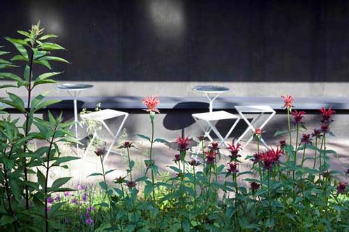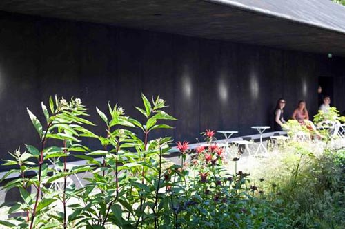 中心花园顶部的天井 一旦进入到隐藏在建筑中心的花园,耀眼的阳光便从开放的天井中倾泻而下,照亮了整个空间,而四周种植的郁郁葱葱的植物也让参观者不由得感到心旷神怡。这个美丽的封闭庭院是由荷兰设计师piet oudolf设计的。他精心挑选了各种各样植物,创造了一个颜色、香味和质感的和谐相容的完美序列。同时,这些美丽的植物和花朵也把蝴蝶和蜜蜂吸引来了,这个生气勃勃的自然空间为参观者创造了一个可以安静思考的冥想空间。