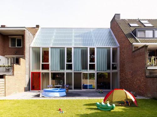 BVA住宅' dmvA,比利时,turnhout “BVA住宅”是比利时建筑事务所dmvA architecten设计的一座多层私人别墅,这个项目位于比利时turnhout的一个住宅区中。由于住宅两边都有紧邻的建筑物,这个简单的体量前后两个立面采用了不同的表皮效果,临街立面是完全封闭的,以保证室内私密性,而朝向后庭院的立面则完全开放。