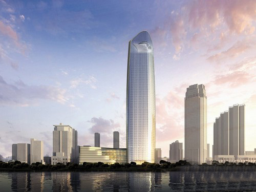 武汉长江航运中心大厦奠基 汉口江畔330米新地标