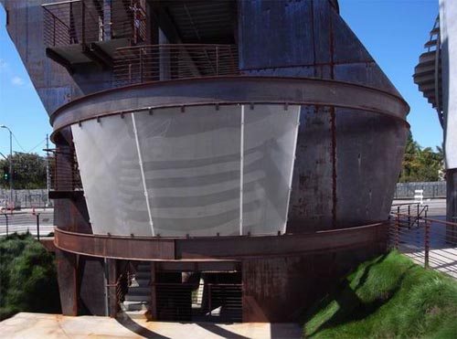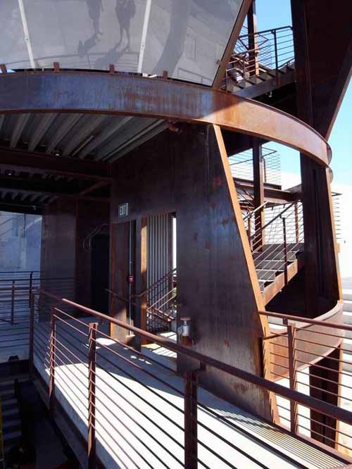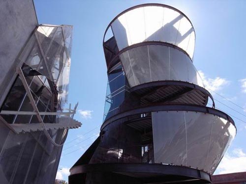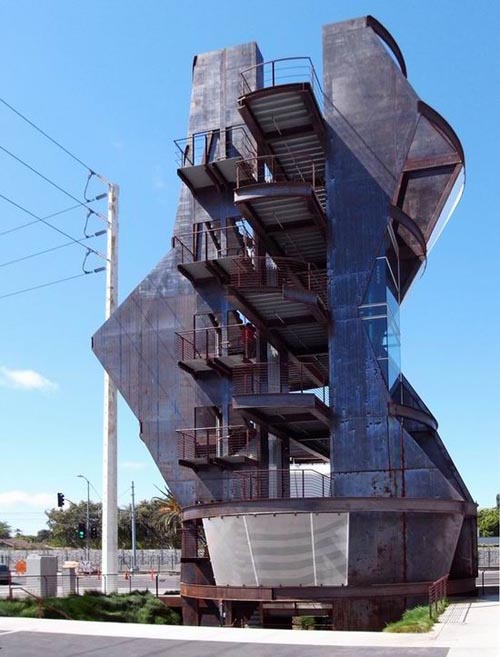 (图片来源:designboom) 'samitaur 大厦'eric owen moss, 加利福尼亚,洛杉矶,culver city designboom最近在美国洛杉矶参观了由 eric owen moss设计的“samitaur大厦”,这座几近完成的信息建筑位于culver创意区。为了成为这一区域的入口标志,这座高72英尺的建筑物高踞在周边塔楼之上,它的功能和形态代表了新城区巨大发展的来临。 这座建筑作为一个开放的体量既是一座瞭望台又可作为户外广告牌使用,它将不断的向过往游客散播这一地区的艺术和文化意涵。