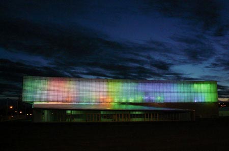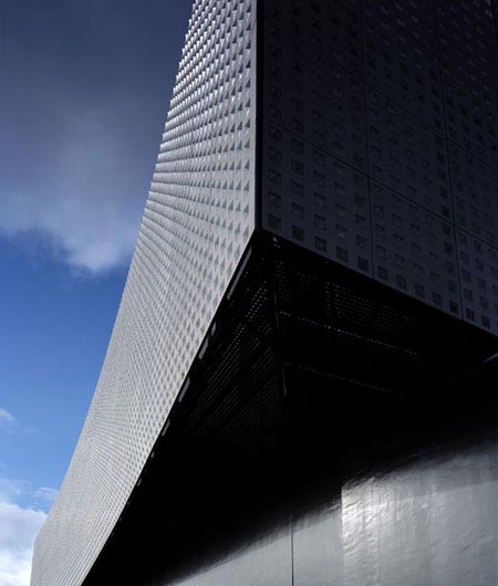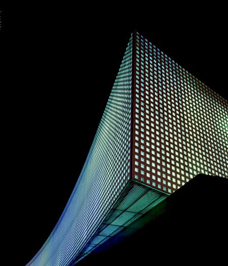 不过,它是一座辨识度很高的建筑,白天2.5万片锥形玻璃砖不断折射阳光,显得闪闪发亮,也投射出不少阴影。夜晚,玻璃砖的透镜效果强化了色彩效果,形成不断变化的立面。