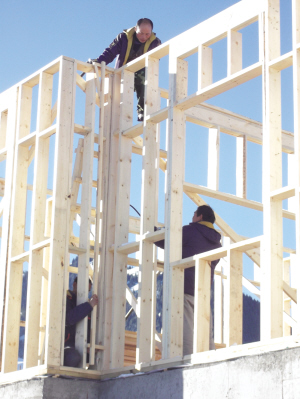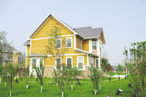 今年6月5日刚刚施工时,居民们看着工人将一套套木结构构件运至屋顶,很好奇,不过更担心会长期施工噪音扰民。工人们按照图纸,熟练地将各部分框架安装固 定,施工仅用了10个工作日即告完成。16号楼的屋顶施工过程没有想象中的尘土飞扬,没有影响到居民的生活,当漂亮的欧式木结构屋顶展现在居民们面前时, 同期进行的其他平改坡工程刚刚进行了三分之一。木结构平改坡屋顶施工周期短、低碳环保,一下引起了居民的热议。 传统的混凝土结构屋顶由于重量大,在浇筑混凝土梁柱后,需要一个多星期的养护期才能承受钢圈屋顶的重量,重量轻的木结构屋顶则没有这部分养护时间;在屋架 上安装树脂瓦的过程中,混凝土结构屋顶需要在屋架上预留钉孔,工艺复杂,木结构屋顶可以直接将瓦片钉在屋架上,节约了施工时间。混凝土结构平改坡的施工周 期在45天至2个月不等,是木结构屋顶施工期的3倍。对此,住在16号楼顶层的葛大爷感受最深:“开始屋顶要做平改坡时,我心里挺矛盾,高兴的是以后屋顶 不再漏雨不再受太阳暴晒,愁的是施工起来又脏又吵,影响日常生活休息。没想到这种木结构屋顶不到半个月就安装完了,噪音还小。听说木结构的屋顶防水防潮性 能特别突出,科技进步真是让老百姓得到了实惠。” 受到社区居民们广泛赞扬的木结构平改坡屋顶,是天津摩力达生态建筑股份有限公司的产品,具有比钢筋混凝土结构重量轻40%、施工周期短、低碳环保等优势。 这种木桁架结构屋顶采用加拿大拥有茂密森林的卑诗省木材。那里出产用于建筑和外观级别的铁杉、花旗松、西部红杉等高质量木材,原料经过防火、防虫、防潮、 烘干、窑干等多种处理,下雨时也能照常施工,不会出现木材浸湿的情况,经过窑干处理过的木材分子结构发生改变,即使长时间浸泡在水里,也只是表面淋湿,不 会渗到木材内部。木材连接使用一种特殊的钢钉,将木料牢牢固定在一起,这种钢钉固定的木结构构件非常结实,在巨大的外力作用下,即使是木料发生断裂,接口 处也不会分开。目前,这栋楼的平改坡项目已经通过了专家的鉴定验收,摩力达木结构屋顶即将参加明年本市平改坡项目的招标工作。不久以后,散发着自然和阳光 气息的木结构产品和房屋将逐渐走进社区,使人们的生活更绿色、低碳。 环保木屋 拥抱自然 木结构房屋有着环保、抗震、节能、隔音等诸多优势,更为关键的是,其施工周期短,工序简单,易于操作,从地基开挖干起,只需数天就可完成。