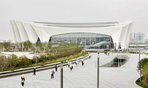 '上海东方体育中心' gmp建筑事务所,中国, 上海 由德国汉堡建筑事务所gmp设计的上海东方体育中心现已正式投入使用。这座全新的场馆将成为第14届国际泳联世界游泳锦标赛的比赛场地。整个工程历时两年半,gmp事务所的设计方案在2008年举行的国际竞赛中脱颖而出。