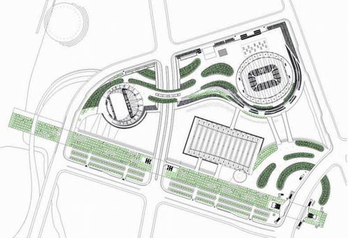 总平面图 项目信息 竞赛: 2008 – 一等奖 设计团队:meinhard von gerkan and nikolaus goetze with magdalene weiss 项目主管: chen ying 团队: jan blasko, lü cha, lü miao, jörn ortmann, sun gaoyang, yan lüji, jin zhan, fang hua, martin friedrich, fu chen, ilse gull, kong rui, lin yi, katrin löser, ren yunping, alexander schober, nina svensson, tian jinghai, zhang yan, zhou yunkai, zhu honghao 结构工程: schlaich bergermann and partners 国际设施: arup 景观: wes & partner 中方合作单位: siadr, 同济建筑设计院 建筑容量: 体育场18,000 座, 游泳馆 5,000座, 室外游泳馆5,000座 委托方: 上海市体育局 施工期限: 2009–2011 |