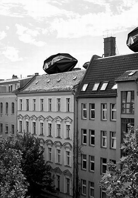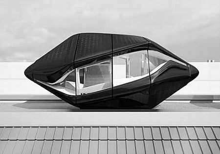 (图片来源:山西晚报) 屋顶上的未来蜗居 这间房子看着就像外星来物,它的整体设计相当紧凑,常用的生活设施齐全。房子外部包裹的全部是太阳能电池板,还有微型涡轮机,它的作用是既可以发电,也可以收集雨水。这间房子可以根据自己的功能需求旋转模块,变成床、书桌、沙发。