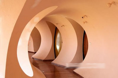 (图片来源:a963) 建筑师Lovag说:“也许是因为经济原因,或是缺乏相应的技术手段,人类把自己幽禁在方形的空间里,而方形的空间充满了端头和死角,限制了我们的行为和和谐感。”他对椭圆形空间的复杂性感兴趣,所以,设计了“泡泡宫”,建筑师Lovag认为:“直线是违反自然的。”人类的本性喜欢更为复杂的东西。