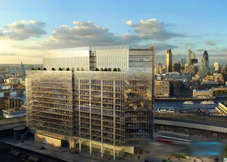 (图片来源:自由建筑报道) 这是20亿英镑的伦敦桥区开发计划的一部分,将在2013年建成,比"碎片大厦"要晚一年。预计其造价为1.37亿英镑,面积为4.3万平方米。 "小碎片大厦"有一座冬季花园,并广泛地使用了自然光照,几乎半数以上的楼层能够有6米的日光照射区。 Sellar地产公司总裁Irvine Sellar表示,它将是伦敦最大和最高效的办公建筑,2013年投入市场时适逢A级办公楼空间短缺之际,预计会大受欢迎。 |