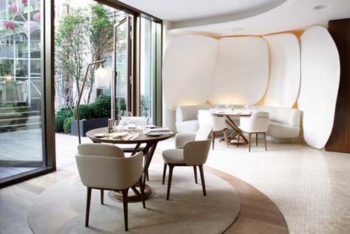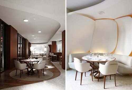 '文华东方酒店' jouin manku studio与patrick jouin ID合作设计,法国,巴黎 巴黎设计事务所jouin manku studio和patrick jouin ID合作设计的巴黎“文华东方酒店”(mandarin oriental hotel)近日正式向公众开放。酒店位于巴黎市中心,周边环境活跃而多样,酒店内设有两间餐厅,一间酒吧,一间蛋糕店和一座城市公园。种满植物的空间将 客人引导至一间光线充沛的餐厅,这个充满山茶花香的空间自然而然的将室内外环境融为一体。装饰丰富的柱子和木质铺地走廊让客人们仿佛在庭院的林间漫步。特 别设计的餐桌椅是酒店的特色,像树木一样的桌腿和椅腿仿佛从地板中生长出来一样。