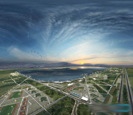 (图片来源:自由建筑报道) Iñaki Echeverria事务所在墨西哥设计了两个生态工程,将大幅度改变景观的样貌。第一个是特斯科科(Texcoco)湖生态公园,这将是世界上最大的城 市公园,该项目占据了墨西哥城山谷的一个地带,跨越面积超过了3.5万英亩,比纽约中央公园大42倍。该项目是高度可持续的,将有150名各个领域的专家 一起合作。公园里有一座湖泊、湿地、草坪和树林,并设置了可再生能源厂房、社区花园以及废水处理设施等。