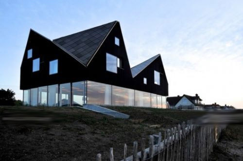 (图片来源:景观中国) 这座房子坐落在英国萨福克海岸的萨奥潘尼斯,是代替原场地的现存建筑。房子用于休闲度假的租住,为Living Architecture所有。 设计概念 为了得到规划的允许,非常重要的一点是与现存的、典型的英国海滨地带的住宅产生联系。屋顶景观及作为卧室的顶层的做法,有点像在与正式的现存的建筑的戏耍,同样带给在英国旅行的游客以包括床、早餐等的浪漫的假日回忆。 形成对比的是,地下室与顶层并无直接联系,起居室和露台都设置在沙丘中,是为了抵挡强烈的风的袭击。但是也同样向所有方向开放,展现宽阔的视野。四角可以 由滑动门开启。这种做法强调了顶层楼板的漂浮感。它的地下层主要体现物质性(使用混凝土、玻璃、铝),与大地的感觉保持一致,顶层是坚实的木材构造,漆上 黑色,主要是采用这个区域的现存建筑的山墙和顶棚的做法。 |
