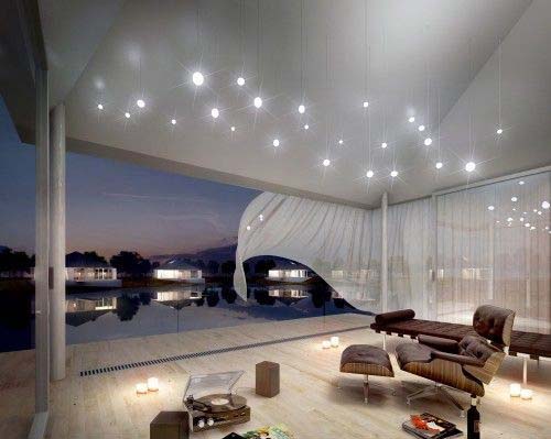 (图片来源:景观中国) 这些相对小的套房在视觉上能够与窗外浓郁的植被及各种高大的树木建立联系。各家的领地是通过一道低矮的隔墙来定义边界,这丝毫没有损坏窗外野生自然的景 象。每一个屋子在一片绿色中呈现为清晰的点状物。它们是人们生活在自然中的栖身之所。它们的位置,确切的说,是在水面和公园相邻的边界上。 考虑到室内较小的楼层面积(略小于120平米),设计师决定运用简洁的形式,但是也要使每个空间发挥到极致。因而,这样小的一个住宅也能够有一个像样的客厅,楼上楼下都有观赏周围美景和地形的宽广的视野。 这个房子坐落在丰富多样的植被中。设计师在选择物种种植花园时,强调精确的选择,这使得花园在整年中能够有自我维持能力。当从室内往花园看去,植物的高低 变化体现了空间的层次性。整个花园的各处都能观赏到水面的美景。为了加强人们与水的直接联系,设计师特别设计了与房屋相连的码头一样的水平台。 |