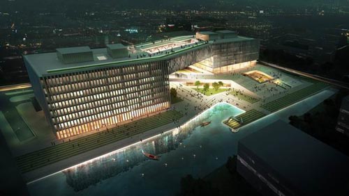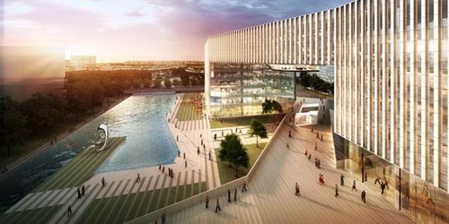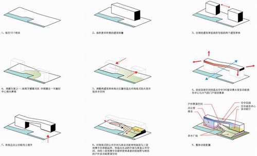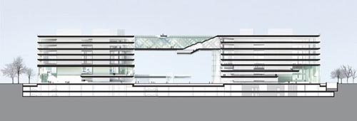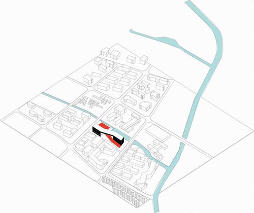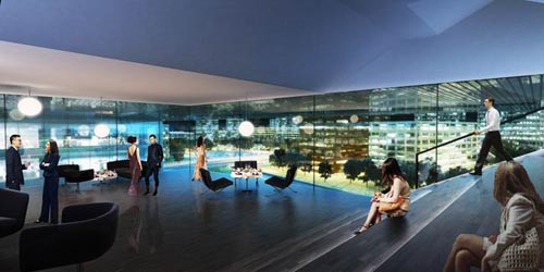 (图片来源:designboom) 建成后的综合体将作为经济园区的地标性建筑,其中将包括办公楼,零售商店,画廊和会议中心。混合的功能和临水的自然环境将为各种大型活动提供极富魅力的场所和活跃的氛围。连接两座塔楼的连廊中设有一座空中休息厅,在这里参观者可以观赏到这一地区的全景。