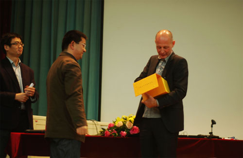 主办方赠送纪念品 演讲结束后,还邀请了清华大学建筑学院教授周榕、场域建筑(北京)工作室主持建筑师梁井宇、朱锫建筑事务所主持建筑师朱锫和Ben van Berkel就建筑创作中的各个话题展开了讨论。对谈后,现场观众进行了提问。 活动最后,活动主办方山东金晶科技股份有限公司向Ben van Berkel赠送了由金晶超白玻璃制作的工艺品,Ben van Berkel表示了衷心的感谢,并对金晶长期支持学术活动表示了赞赏。 各位听众人员表示,通过大讲堂系列讲座的持续举办,把国际大师请到过来,让我们在国内隔一段时间就接触到世界领先的建筑思想和潮流,对于国内建筑理念和技术的发展具有积极的推动作用,让各位学子以及业内建筑师受益匪浅,希望大讲堂越办越精彩。 “金晶全球著名建筑师大讲堂”由清华大学建筑学院和山东金晶科技股份有限公司联合主办。从2009年9月开始,已经连续的举办了11期,伊东丰雄、Jesse Reiser、畏研吾、雷姆•库哈斯、沃尔夫•德•普瑞克斯、西泽立卫等世界著名建筑大师都在大讲堂做过演讲,为数千学员和建筑师提供了学习的平台。 |