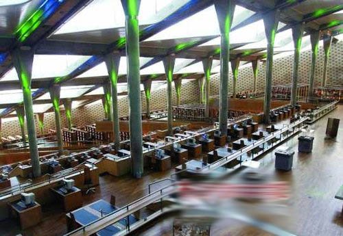 (图片来源:南方都市报) 2000年前,在埃及亚历山大,古代最大的图书馆被大火摧毁。现在一幢高科技的信息宫殿取而代之。亚历山大图书馆于2002年开始营业,几乎完全抛弃纸本图书,被认为是数字化图书馆的典范。