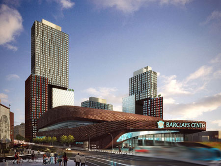 (图片来源:自由建筑报道) 为了与周围的环境和谐一致,SHoP事务所尽量在Barclays中心和新的住宅楼之间取得视觉上的平衡。为此,大厦被打破成一组相互分离的结构,并采用了不同的形状和材料,利用灯光、图案和纹理构成独特的正面形象。