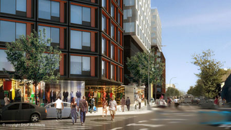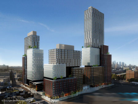 (图片来源:自由建筑报道) 322英尺的大厦有32层,位于49亿美元"亚特兰大场"(Atlantic Yards)开发工程的核心位置。大厦有350套公寓,其中一半是中低收入人群买得起的住房。