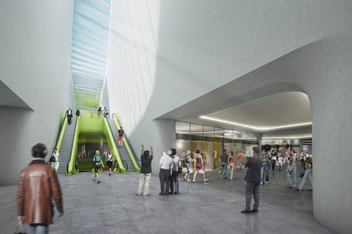 升高的人行步道可以俯瞰底部的中心广场(图片来源:designboom)