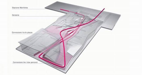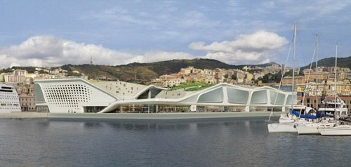 'ponte parodi' by UNstudio,意大利, 热那亚(图片来源:designboom) 为了复兴意大利热那亚的滨水工业区,阿姆斯特丹建筑事务所UNstudio设计了一个全新的集居住、零售文化中心于一体的综合体建筑。这个开发项目将把原 来海边的工业区逐渐迁至周边的空地上,在新的滨水区域内建造新建筑,以吸引更多居住者和游客,让新区成为城市中心的延伸。基地位于热那亚旧海港 (porto antico)和历史区之间,建成后将吸引众多学生、居住者和旅游者。UNstudio设计的新建筑综合体将室内外空间结合到一起,预计将包含 130000平方米的公共空间,建筑高度可达20米,以延续邻近城市的文脉尺度。