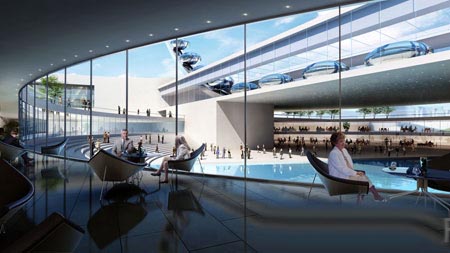 (图片来源:自由建筑报道 ) 由Gensler事务所设计的这一工程最高点是地上220米。为了避免对周围区域早成影响,Gensler考虑设计半地下的设施。这样能够在其基座周围设置风景如画的公共用地,又能给游客提供一条安静的流通路径。