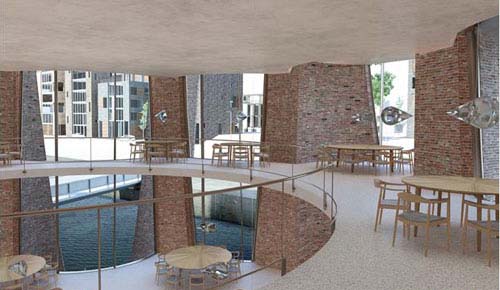(图片来源:自由建筑报道) Olafur Eliasson工作室公布了为投资公司Kirk Kapital设计的一个海港计划。该计划位于丹麦的Vejle海港,将建造一座新的海港岛和12座建筑,包括住宅和商业楼以及一个新的船只停泊点。 Eliasson设计了一个雕塑般的砖石结构建筑,底层是一座咖啡馆和一个 展览空间,上层是可租用的办公空间和Kirk Kapital公司的总部。Eliasson介绍说,他意在用明确的建筑脉络来探索雕塑般的品质以及个人和集体对于空间的不同体验。这座建筑有望在 2016年建成。 |