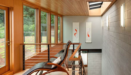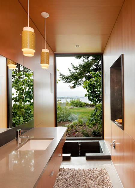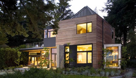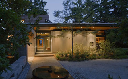 (图片来源:自由建筑报道) 它坐落在华盛顿州的Yeomalt Bluff,能够180度观赏到Puget Sound和西雅图城的景色。与传统的北美住宅相比,通过使用地热采暖、光电太阳能收集器、太阳能热水器、热回收技术等,这座房屋的能耗降低了70%。此 外,它还安装了雨水收集池、地板采暖、三层玻璃窗以及种植了植被的屋顶等。