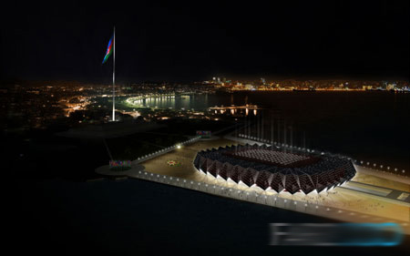 (图片来源:自由建筑报道) 2012年5月,欧洲电视网歌唱大赛(Eurovision Song Contest)即将在阿塞拜疆首都巴库(Baku)水晶厅(Crystal Hall)举行。这座场馆的总承包商是Alpine Bau Deutschland GmbH,2011年8月2日签订合同后开始设计和建造多功能的场馆,预计可容纳2.5万名观众。