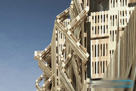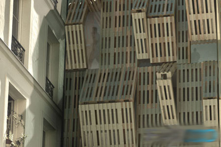 (图片来源:自由建筑报道) 对于Stephane Malka事务所来说,生态设计面临的真正挑战是重塑材料和对目标的实验性再造。为此,该事务所在巴黎Amelot街设计的学生宿舍便成为插入城市空隙的一道风景。 利用“百叶墙”的厚度,它轻而易举地改造了现有建筑,而不是盲目拆除而导致大量的污染。水平方向的铰链将木质百叶板向上收缩,既可以遮挡也可以打开。各种不同规格的百叶板形成不同的几何形状,并可以根据用途经常作调整。 建筑所用的材料也是回收来的,不用进行额外的加工,减少了生产的能耗和副产品所带来的污染。环保策略不是建立在摧毁的基础上,而是对建成环境进行“叠加”。利用新的土地策略,Stephane Malka事务所在这一地块上实施了真正的生态设计手法。 |