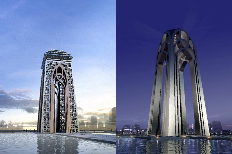 (图片来源:互联网) 近期,中国的十三朝古都西安又将有一个大的动作:在未央张家堡广场建设一座99米高的标志性雕塑“长安门”。经过前期的公示及修改,西安市规划局近日公布了完善后的两套雕塑方案,再征求市民的意见和建议。 曾经一个友人问我,如果给你一个出国的机会,你会去哪个国家?我回答是,日本。他继续问我,日本最吸引你的地方是什么?我回答是,建筑。那些中国建筑风格的建筑。 曾几何时,我们需要看自己风格的建筑,竟然要去日本和韩国。这是一个莫大的讽刺。 曾几何时,中国大陆变成了各种建筑的试验场,一幢幢、一件件奇形怪状的大楼平地而起,还美其名曰“标志性建筑”、“地标性建筑”。就拿北京来说,什么“鸟蛋”、“大裤衩”拔地而起。首都师范大学北京史和城市文化管理学教授宋卫忠老师曾对笔者说,北京现在是鸟气十足,北边有个鸟巢(国家体育馆)、南边有个鸟蛋(国家大剧院)、西边有个鸟笼子(五棵松体育馆)、东边有个歪脖子鸟树(中央电视台演播大楼新楼)。 当我看到给出的方案一和方案二的时候,我倒吸了一口冷气:这设计的方案,怎么跟北京的某个争议性建筑那么的神似啊! 在这之前,关于大型的地标性建筑物的上马,已经有了关于所谓“大裤衩”(中央电视台演播大楼新楼)的争论。央视的有关负责人和设计方称该建筑设计是“力与美的结合”,侧面正面形“扭曲的造型可以产生丰富的空间变换感觉,让人产生各种想象,不会单调。”而网友们却说,“这是一个违背中国审美精神的‘歪门’,像一个双膝瘫地的跪者。”而且其设计者荷兰建筑师库哈斯在其新书中毫不掩饰地承认:他的设计其实是个色情玩笑———主楼和辅楼分别象征着“女臀”和“男gen”。 且不说这样貌丑陋,且象征着钱财会不断流失的所谓“悬空煞”的曲角悬空的建筑是多么的不符合传统国人的风水学,就这“色情玩笑”怎是国人所能接受的呢,难道说中国中央电视台的媒体信息要从这个“色情的”大楼中一一发出,发给全国的民众?况且这样反自然、反地心引力的“危楼”,既极不安全,又极度昂贵浪费:最初预算50个亿,现在传闻已近100亿。而且这样所谓“高技术难度”的建筑,未来的维修费一般都要超过建造费,而且要比普通建筑维修的费用高得多,是一个真正的无底洞。 再回过头来看这所谓的“长安门”,无论方案一还是方案二,据说设计灵感都来自于篆书的“安”这个字的外形。再看看官方给出的设计图,整个建筑高达99米,仅门内高度就达78米,而宽度却只有18米,俨然一个细长的倒“U”型,不由得众人向歪的地方去想——甚至有网友说得更加干脆:这是在给杜蕾斯做广告吧! 高楼大厦平地起,可是中国却因为这些高楼而变成了一个不伦不类的国家。不仅北京、广州、上海等等国际性大都市越来越缺少自己的特色,就连西安这样的千年古都都过来凑这种“后现代设计”的热闹。中国的建筑设计逐步走向了三大误区:第一,着力模仿西方建筑,照搬照抄,唯洋是取,去其精华,取其糟粕;第二,随意创新,毫无内涵,极力彰显个性,不顾实际需要;第三,乱搞嫁接,弃传统文化的精髓于不顾,而仅仅片面地择取传统中某些事物的表皮,并加以放大,美其名曰传统文化,实际上粗俗不堪。 如果说“大裤衩”的出现是因为第一个误区,而我们走在大街上随处可见的那些不规则几何体形状的建筑是因为第二个误区,那么CNN刚刚评定的全球十大最丑建筑中的沈阳“方圆大厦”和这“长安门”无疑就是第三个误区的完美写照。 相声演员郭德纲曾说,不是我们创新的不够,而是我们对传统的继承不够。我想说的是,正是因为我们对传统的继承不够,所以我们才无法创新。正如人还没有学会走路,是无法学会跑;一个连母语的语法和词汇都搞不清楚的人,是无法熟练地掌握一门外语的。 中国传统的建筑源远流长,大气、生气、富丽而又天人合一,享誉全球。深深地影响了日本、韩国、越南等东亚地区的建筑设计理念。中国传统建筑四角飞檐翘起,或扑朔欲飞,或欲立欲飘,勃勃生气又稳重大气。中国的传统建筑,不仅仅是中国传统文化的体现,更是对于建筑学本身的完美诠释。无论从用料、受力、建筑格局、空间感官等等都能与建筑者和使用者相得益彰。 而今天,我们不仅对于古城的保护、对于已有古建筑的保护十分的不到位,远不及日韩;甚至于对传统建筑的科学继承也十分不到位,日韩设计师在设计标志性建筑之时,充分运用传统建筑中的知识,施用于当代建筑。如日本著名设计师丹下健三所设计的代代木国立综合体育馆就为这一设计中的佼佼者。国内也有相类似的建筑,如1998年建成北京大学新图书馆,也是传统设计理念与现代建筑工艺的完美结合,与燕园原本的园林风格融为一体,毫无突兀之感,成为如今北京大学的标志建筑。 不仅仅是建筑业,服装设计,绘画,雕塑,影视剧等等一切当代中国的艺术领域,都充斥着这三大误区。尤其以传统文化复兴这一口号越来越响的今天,一些不伦不类的东西日益的刺激着我们国人的眼球。在衣服上绣上点小花,就说是有古典风尚;拍了点宫廷剧,就说是历史题材影视;弄了一个四不像的“篆书”“安”字做城门,就可以说是“以现代材料和现代工艺诠释历史、创造当代,以实现优秀传统文化的现代转换”;“营造西安之门,凸显中国精神,中国气派,时