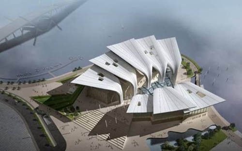 (图片来源:互联网) 投资10多亿的无锡大剧院启用在即,成为无锡目前最亮眼的地标性建筑。从空中俯瞰,覆盖整体建筑的八片振翅欲飞的“翅膀”,犹如一幅精美的画卷。 耗资逾十亿元的无锡大剧院26日进行了第二次试演,当地官员透露,因独特的设计风格,该剧院将作为无锡对外推广的最佳地标性建筑,有望角逐中国建筑业最高荣誉“鲁班奖”。