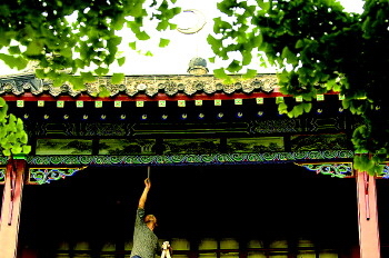 (图片来源:生活日报) 位于济南回民小区永长街47号的清真南大寺,始建于元朝乙未年(1295年),是济南市最古老、最宏大的清真寺。5月1日,记者在现场看到,经过大约3个月时间的精心维修,全部维修工作即将完工,这座有700多年历史的古建筑群已经焕然一新。据了解,该建筑群现为省级重点文物保护单位,正申报全国重点文物保护单位。 维修专家正对古建筑上的彩绘做最后修整 5月1日,媒体来到现场时,只见院内一些古建筑的维修工作已经基本完成。一些维修人员正站在脚手架上,对古建筑上的彩绘进行最后修整。 “维修工作已经进行3个月了,再有三五天就能完工。”清真南大寺教长金述龙介绍说,这组始建于元朝的古建筑群,主要采用的是中国传统的宫殿式建筑形式,又融入了伊斯兰建筑风格和文化元素,是一座园林式清真寺。整座寺院占地10多亩,建筑面积7000多平方米。建筑排列井然有序、循序渐进、严肃整齐。 媒体看到,寺院坐西朝东,由东向西其主体建筑为影壁、邦克楼(下面是寺大门)、望月楼、礼拜大殿等,排列在一条东西中轴线上。院内还有许多古碑,以及铁树、圣柳、棕榈等花木点缀,与古建筑相映生辉,浑然一体,给人以幽深肃穆之感。 “这次维修是局部维修,规模不算大,主要是对第一进院和第二进院的彩绘部分进行描绘和粉刷。”金述龙教长说,清真寺邦克楼是一座门楼式建筑,民国三年(1914)建成。门楼下是清真寺的大门,门楣上有“清真寺”三字,是寺中一座标志性的建筑。 清真南大寺已申报全国重点文物保护单位 媒体看到,在前院中有座立于十三层台阶之上的“望月楼”,是一座木棂玻璃窗式二层门楼,单檐黑瓦庑殿顶,平脊正中竖插象征伊斯兰教的一弯新月。据了解,这是伊斯兰教特有建筑,是穆斯林用来观看月亮出没、宣告斋戒时日的地方。其上书“望月思真”四个篆体汉字,给人一种古朴庄严的感觉。最里面的建筑就是雄伟壮观的礼拜大殿,坐落在12级台阶之上。在大殿前厦卷棚内梁椽之间,悬挂着许多光闪照人的匾额。其中,正上方的匾额上写有“清真”二字,字体宏大,是明崇祯年间宁阳王所书。 据金述龙教长介绍,在前庭厦内的各类碑刻中,“明弘治碑”是我省伊斯兰教现存的最早碑刻之一,被誉为“齐鲁大地伊斯兰教第一碑”。 “整个寺院现存建筑以明清两朝为主,现在是山东省重点文物保护单位。”金述龙教长告诉记者,目前,清真南大寺已经申报全国重点文物保护单位,他希望能顺利入选。 |