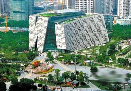 (图片来源:羊城晚报) 劲:新馆可抗高震级地震 和一般建筑的四平八稳相比,新馆“太斜”了。进入新馆大堂仰望,只见两栋巨大的楼房仿佛是向着对方倒去,最后“撞”在了一起,互相支撑着———真的好“斜”! 新馆地下两层,地上十层,建筑高度约50米,建筑设中庭,把新馆分成南楼和北楼。其中南楼整体向北倾斜6.8-14.8度,北楼南侧柱向南倾斜8.3-12.67度,北侧柱向北倾斜2-14度,中间部分分开叉柱倾斜达17度。这是国内目前倾斜角度最大的框架结构。 倾斜度如此之大,它安全吗? 施工中采用的倾斜独立柱及树状结构十分复杂。在八层结构合拢前,南、北楼均属悬臂结构,全靠首层柱的抗弯、抗剪能力支撑。因此,为确保施工安全,每一层楼面浇注完毕,在确保砼强度达到设计要求后才能往上施工。施工中时刻对多条典型柱的变形和内力进行监测,即时掌握柱子的变形情况,防止倾覆。 南楼、北楼起到八层后,通过万向铰和连杆的安装,将它们连为一体,这样,便实现了整体结构的稳定和安全。“万向铰”就像关节,通过它,保持手臂的稳定和灵活。 新馆刚刚进行了抗震能力测试,检验合格,可抗高强度地震。 精:每扇玻璃窗都需特制 据介绍,图书馆平面是半月形的,各层平面面积均不相等。因此,在选择采购装饰材料时,缺乏统一标准与尺寸,甚至连一扇简单的玻璃窗都需要特殊定制。 更困难的是,该建筑里面倾斜角从1.6度到17度不等,外形呈现扭曲不规则凹凸感,造成外立面建设困难。 据悉,整个外立面石材幕墙面积约为25万平方米,累计约有10万块石材,大小尺寸不一,切角不一,规格就近1.6万个。 净:直饮水系统定时杀菌 广图新馆的直饮水系统可以实现当天产水当天饮用完毕,管网系统每天定时用臭氧和紫外线杀菌消毒保鲜,预防二次污染。此外,新馆与珠江新城供冷站相连。该供冷站是全国唯一建在地下的花园式供冷站。 小贴士 五一期间开放首层 市民可体验全自动化借还书机器,还可使用50英寸大屏幕看书读报 早前报道 新广图昨起展示开放 第一天迎客4600多人 先进的无线射频识别技术,国内首次启用的水平垂直文献自动分拣系统……昨日上午,广州市民期盼6年之久的广州图书馆新馆,首次对公众实现首层大厅“展示性开放”。截至下午4时,逾4600多位读者进入新广图首层大厅,感受模拟自助办证、数字阅读的趣味。