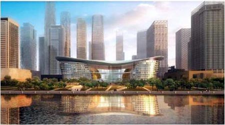 据了解,该项目地下2层,地上12层,建筑高度60米,占地3.38万平方米,总建筑面积19万平方米,采用框架多核心筒结构形式。于家堡国际金融酒店会议中心定位高端会议、会展、酒店等多种城市公共服务功能,建筑造型大气、稳重,建筑风格现代、简洁,是海河沿岸的地标性建筑之一。