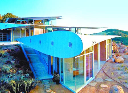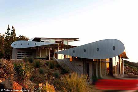 (图片来源:互联网) 坐落在马里布海滩上的“机翼之家”远远看上去就像是架要起飞的客机(上图),这座房屋的屋顶使用了大型喷气式飞机上拆下来的机翼,设计师大卫·赫尔特兹应房屋主人要求设计具有曲线美的屋顶,于是大卫就想到了使用客机机翼。“桥屋”由圣弗朗西斯科设计师斯坦利·斯泰特维兹设计,整座房屋十分狭长,横穿了一条沟渠,占地面积15英亩。
