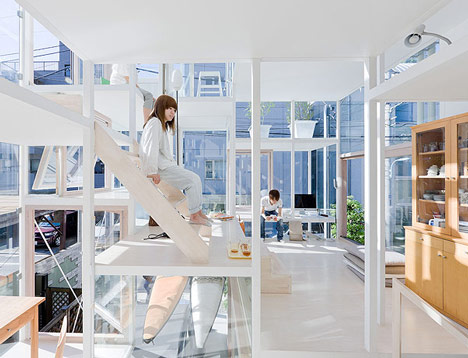 (图图片来源:中国网滨海高新) NA House有三层,分为许多交错的平台。 确实存在的一些“墙”主要是玻璃,在不增加私密空间的同时保证了既有空间的独立性与安全性。 |