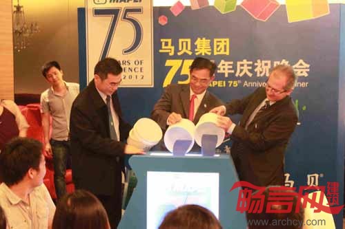 活动开幕仪式 2012年5月10日,在广州的一家华丽意大利餐厅,响起一连串喜悦欢笑声;蓝白相间的装潢,突显了75周年的标志。如此盛大晚宴正是马贝建筑材料有限公司庆祝集团75周年的重要活动。 晚宴于晚上7时正式展开,地方虽小,却洋溢着热闹气氛。现场坐满宾客,不仅是来自中国各地马贝的经销商和一些知名的开发商及建筑行业客户,济济一堂共同欢庆这一盛事,同时更荣幸邀请了意大利驻广州总领事馆的商务专员Mr. Paolo Lemma作主礼嘉宾。马贝中国区董事总经理郭金荣先生、马贝营运总监梁达荣先生和意大利领事馆代表Mr. Paolo Lemma进行一个特别而简单的亮灯仪式,启动马贝于2012年所举办的一连串庆祝活动,同时意味着马贝与各位在未来共同协助大小建筑梦想的实现,迈向更多的周年庆! 马贝中国区董事总经理郭金荣先生指出,马贝之所以取得如此成就,全因有一群国内客户的鼎力支持,藉这个特别的75周年庆祝晚宴,特别创立马贝钻石会。回馈客户一直以来的热忱相助之外,有利加强与客户的沟通交流,以改善产品及服务。